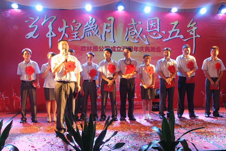 回首5年的歷程,我們有辛酸, 我們有痛苦,我們有榮譽,我們更有輝煌!本次慶典囊括了5年歷程回顧、周年慶文藝匯演、幸運抽獎、頒獎等多個系列活動。在本次慶典中,全體歐林雅人共同分享成功的喜悅,共同見證公司5年的輝煌歷程,感受公司一路走來的辛勤與溫情。