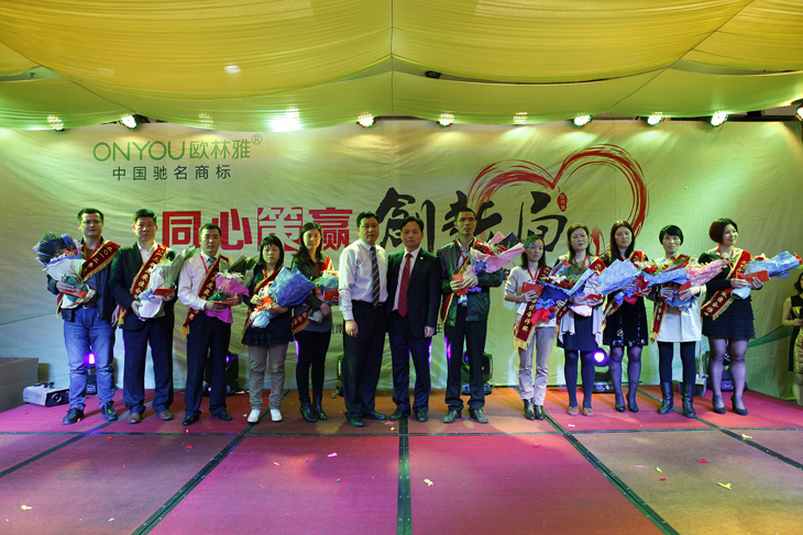 2012已經(jīng)過(guò)去,2013已經(jīng)朝我們走來(lái)。在此次的2012年度峰會(huì)中,我們見證了一批批優(yōu)秀的加盟商創(chuàng)業(yè)艱辛及收獲的喜悅,俗話說(shuō)榜樣的力量是無(wú)窮的!"年度標(biāo)桿獎(jiǎng)""*佳合作獎(jiǎng)""平均單店單月后補(bǔ)排名獎(jiǎng)""全國(guó)優(yōu)秀店長(zhǎng)獎(jiǎng)""新SI形象*優(yōu)獎(jiǎng)""開店*多獎(jiǎng)",一樁樁的獎(jiǎng)項(xiàng),是歐林雅對(duì)于加盟商的鼓勵(lì),同時(shí)也見證了歐林雅的成長(zhǎng),洋溢著歐林雅的風(fēng)采!懷揣對(duì)于歐林雅的期待,懷揣這沉甸甸的榮譽(yù),他們感慨道,"2013年業(yè)績(jī)翻番,一馬當(dāng)先""感謝歐林雅,我一定再創(chuàng)佳績(jī)"……