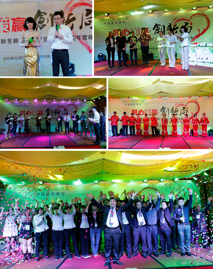 2013年4月12日,對(duì)于歐林雅來(lái)說(shuō)是個(gè)團(tuán)圓的日子,歐林雅同心策贏·創(chuàng)新局"2012年度頒獎(jiǎng)盛典在長(zhǎng)沙通程盛源酒店隆重開啟!東西南北中各地加盟商齊聚一堂,共襄此次盛會(huì)!