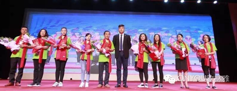 楊董、傅總與公司各級領導在大家的緊密簇擁下走向會場的中央,與歐林雅家人相擁,共享喜悅