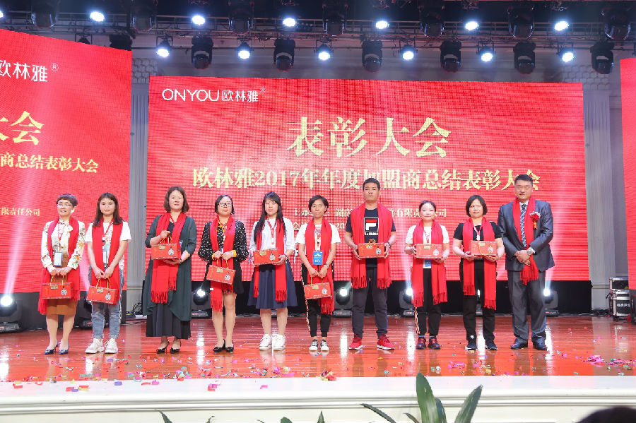 歐林雅能夠獲得如此大的成就,離不開加盟商的支持與信任,只有緊緊團(tuán)結(jié)在一起,歐林雅的事業(yè)才能越做越好!在此感謝辛勤付出和做出突出貢獻(xiàn)的家人們,公司也特別設(shè)立了“年度最佳成長獎”、“年度標(biāo)桿獎”、“年度最佳形象獎”、“年度最佳服務(wù)獎”、“年度最佳店長獎”五個大獎,將至高的榮譽(yù)頒給你們,將豐厚的獎勵送給你們,愿你們留下最美的精彩時刻!