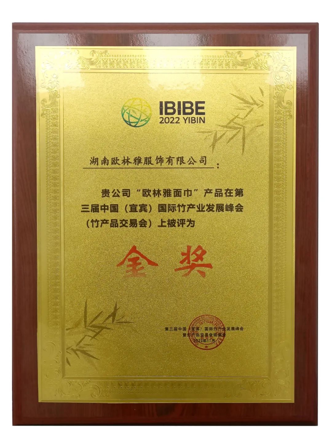 本次竹博會,嘉賓們圍繞“竹業(yè)品牌賦能創(chuàng)新發(fā)展”“以竹代塑與低碳發(fā)展”和“竹文化與產(chǎn)業(yè)發(fā)展”等三大主題進行思想碰撞,進一步展示我國竹產(chǎn)業(yè)發(fā)展新理念、新技術、新成果,分析發(fā)展新趨勢、新機遇、新動能,促進竹產(chǎn)業(yè)轉(zhuǎn)型升級、提質(zhì)增效。作為竹纖維領軍企業(yè),湖南歐林雅服飾有限責任公司“歐林雅面巾”系列產(chǎn)品榮獲第三屆中國(宜賓)國際竹產(chǎn)業(yè)發(fā)展峰會金獎。