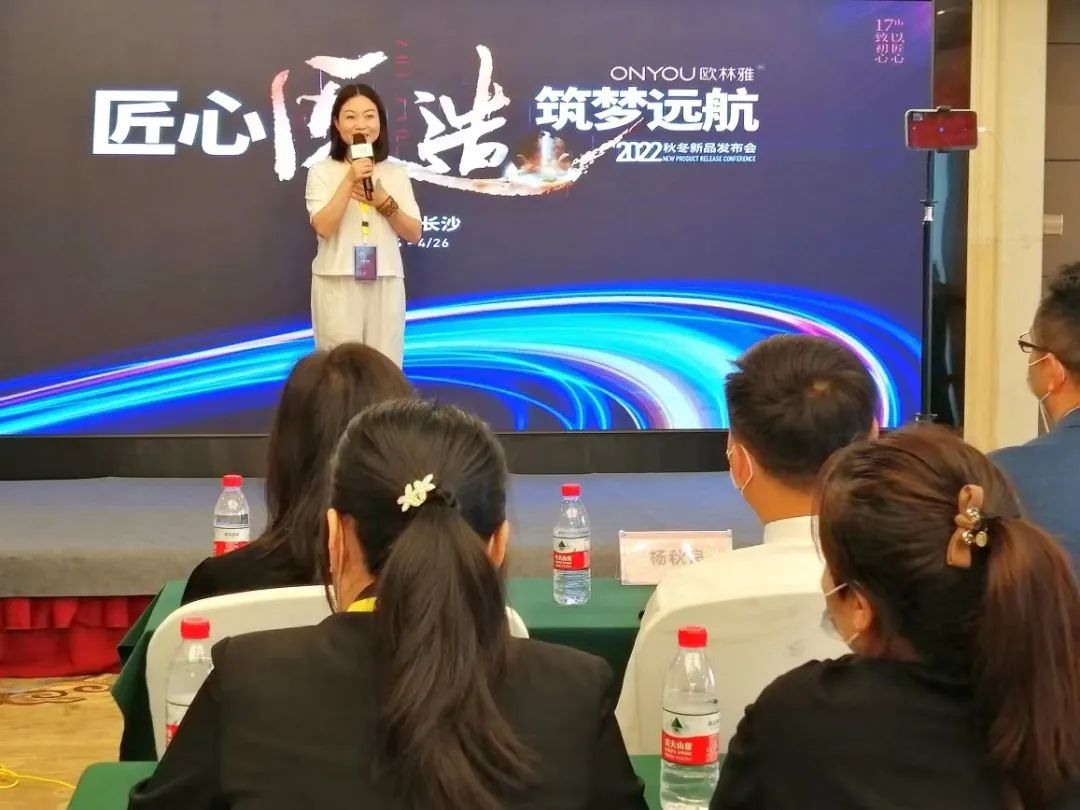 湖南區(qū)域經(jīng)銷商代表文微微上臺(tái)分享了“我與歐林雅的故事”,并表示“非常感謝歐林雅公司這個(gè)大平臺(tái),針對(duì)門店提出的建議公司都能及時(shí)得到解決。感謝公司一直以來(lái)的幫扶與支持,未來(lái)我們將繼續(xù)雙贏互惠,共同翻開(kāi)嶄新的篇章,共贏美好的未來(lái)。”