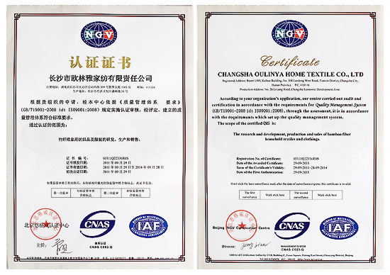 歐林雅公司獲ISO9001:2008質(zhì)量管理體系認(rèn)證證書(shū)